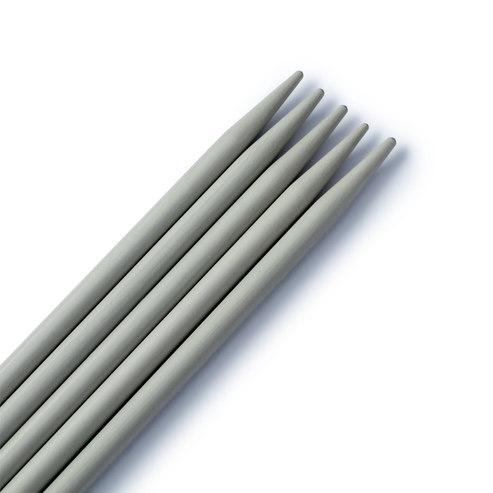 Pearl grey aluminium double pointed knitting needles. Set of five