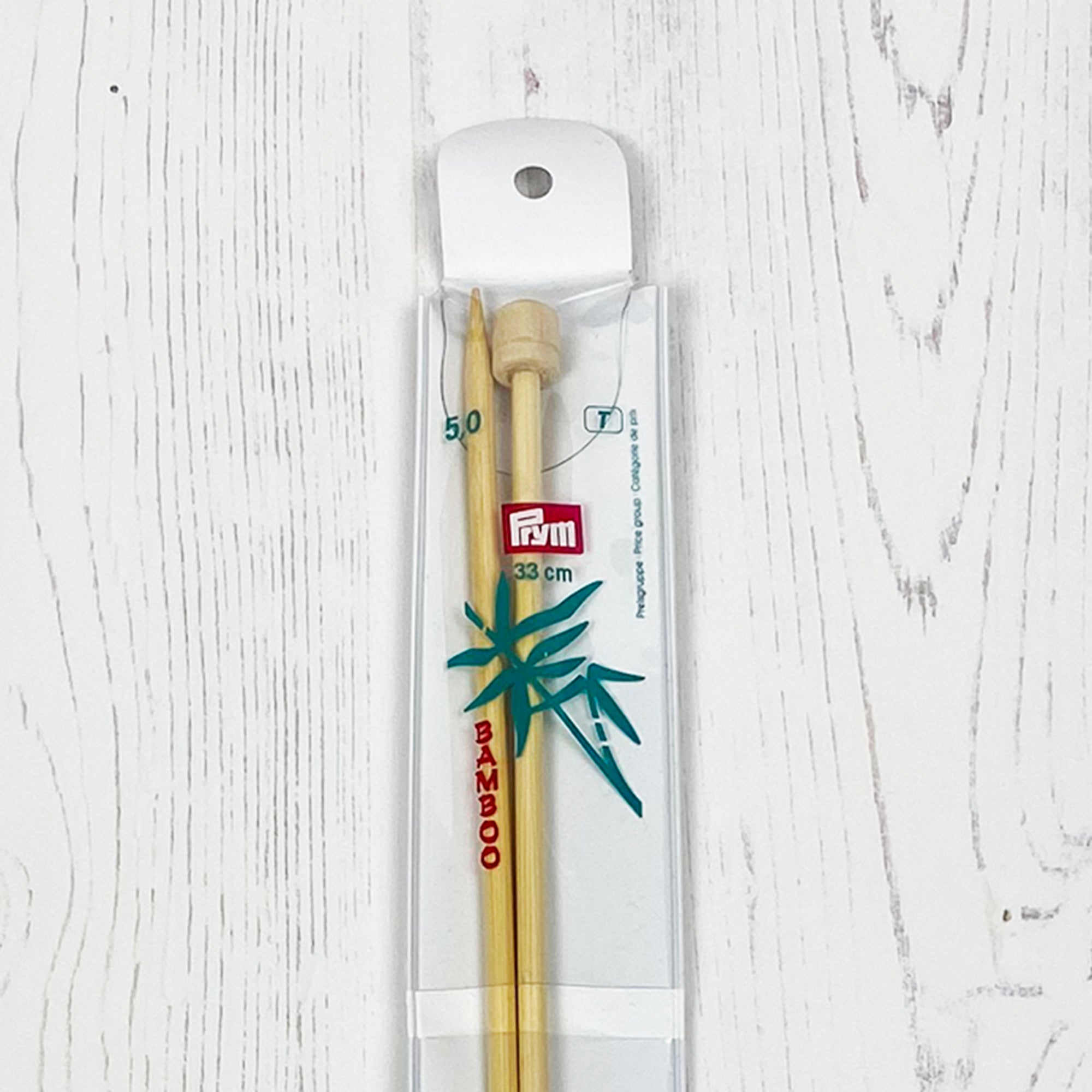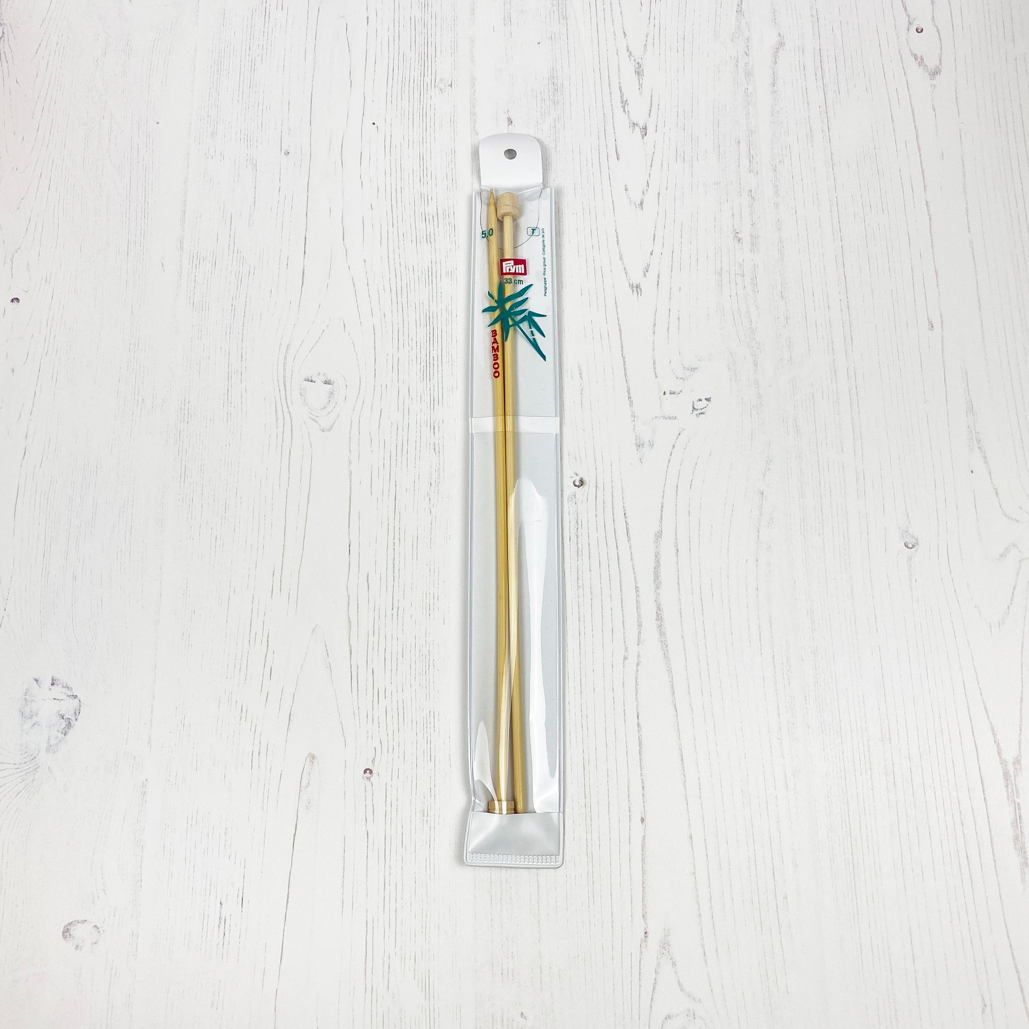 Pair of PRYM 5mm bamboo single-pointed needles for knitting